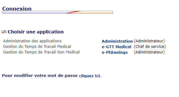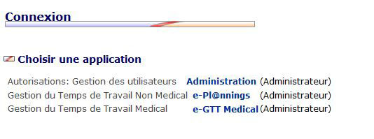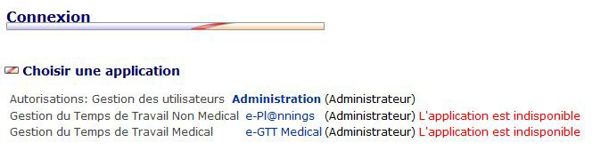 - L'utilisateur peut choisir une application voulue en cliquant sur son lien. Les applications affichées à l'écran sont les applications dont l'utilisateur dispose des droits d'accès.